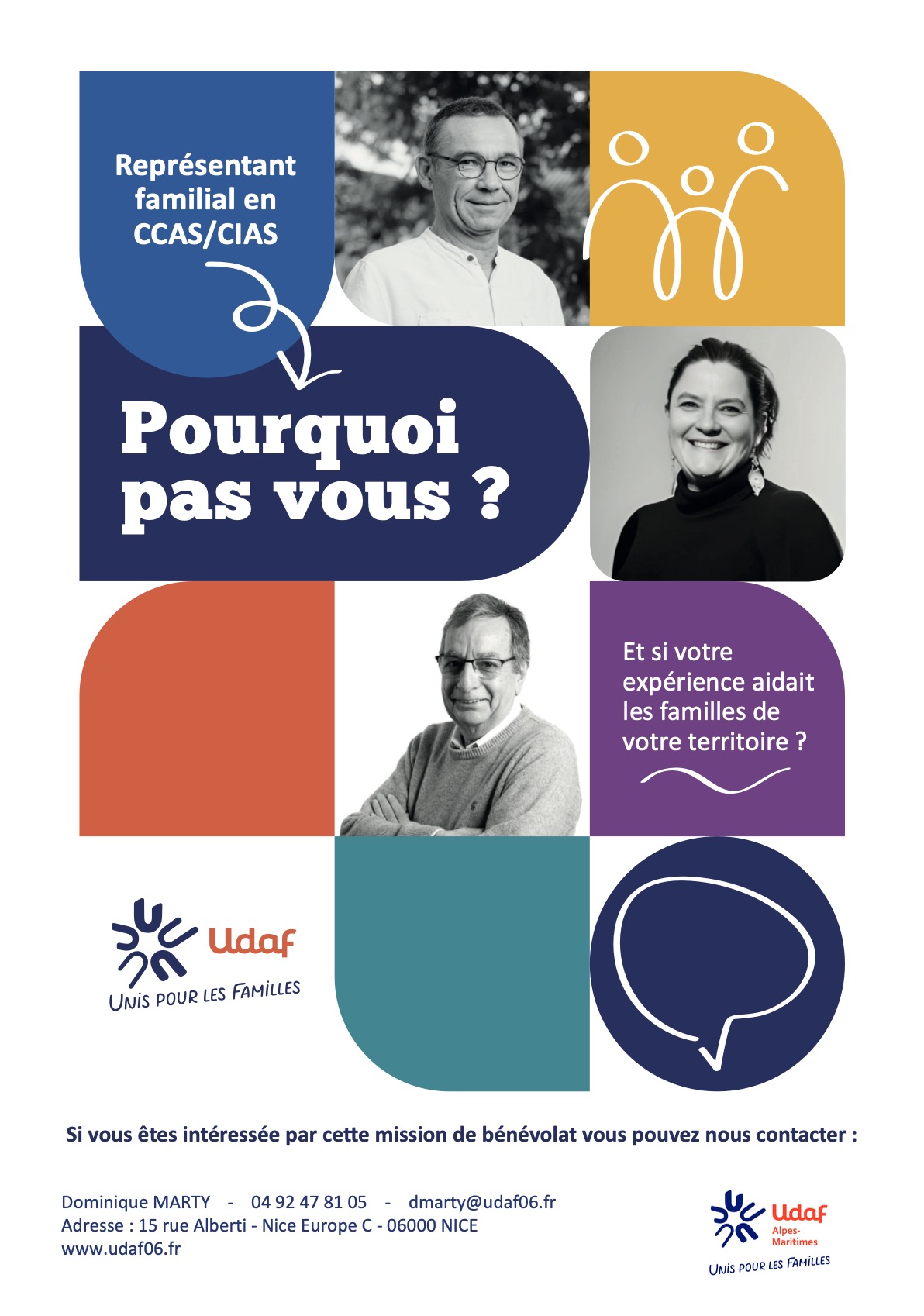 L’Udaf des Alpes-Maritimes lance une vaste campagne de recrutement de représentants familiaux pour siéger au sein des Centres Communaux d’Action Sociale (CCAS). S’engager comme représentant familial en CCAS, c’est agir concrètement pour les familles de sa commune. En siégeant au cœur de l’action sociale locale, vous contribuez aux décisions qui accompagnent les habitants à tous les âges de la vie. Et si vous donniez du sens à votre engagement citoyen ?